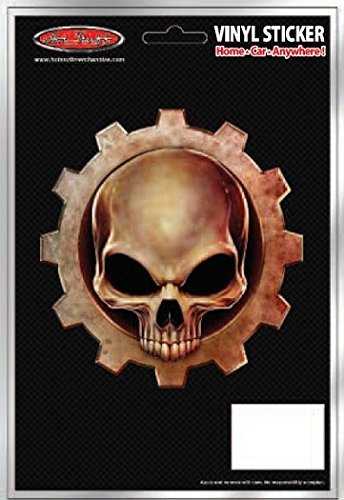 Cool looking Gear Skull, retro style design. grungy looking, auto sticker design. Item is kiss-cut peel off. Package size is 6 x 8 inch. Sticker size (approx): 5 x 5