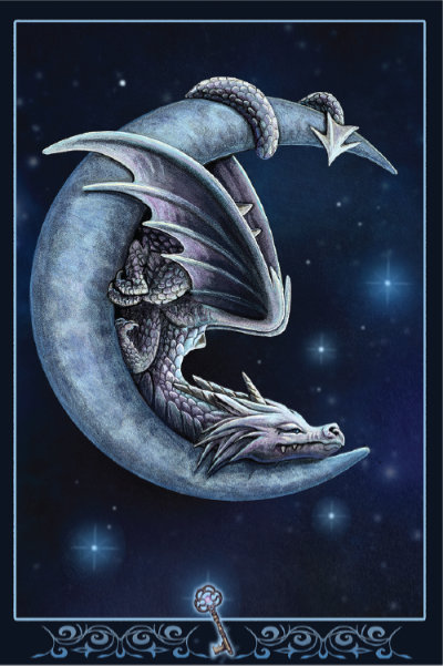 Cute magical dragon taking a nap on a crescent moon. Illustrated by renowned fantasy artist, Lisa Parker. Item is printed with vibrant colors on high grade glossy paper. Package size is 12 x 18 inch.
