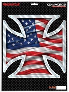 • Large Iron Cross Us Flag Laser Auto Sticker